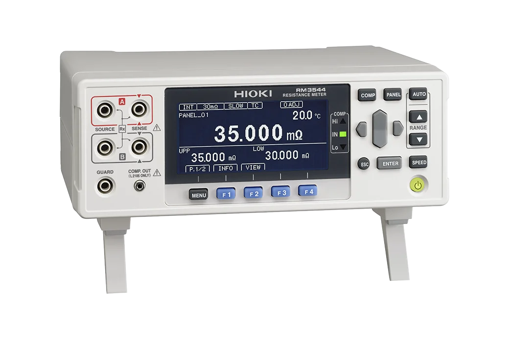 Los medidores de resistencia de CC de Hioki miden una amplia gama de valores de resistencia con un alto nivel de precisión. El RM3544 es un comprobador de resistencia fácil de usar adecuado para usar en líneas de producción manuales o automatizadas para medir la resistencia de devanado de motores y transformadores, así como la resistencia de contacto de relés de potencia, interruptores y conectores.