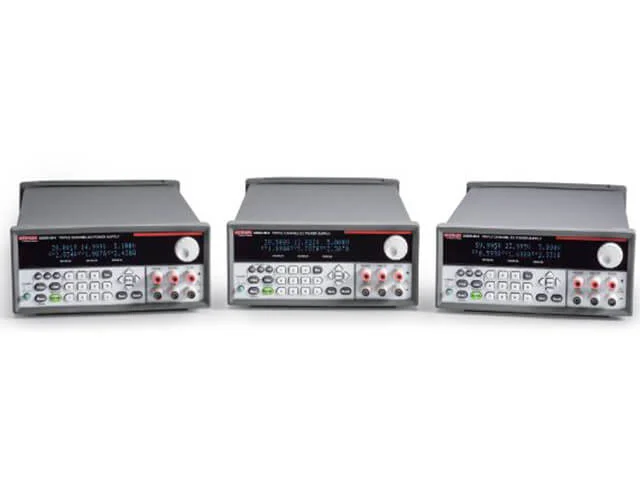 Las fuentes de poder de la serie 2230 proporcionan hasta 375 W de potencia en un gabinete compacto de 2 U de alto y medio rack de ancho. La 2230-30-6 ofrece hasta 6 A en dos canales; la 2230-60-3 ofrece hasta 60 V desde dos canales. Los canales ajustables, independientes y aislados pueden probar dos dispositivos de voltaje único o un dispositivo de voltaje múltiple con una fuente de alimentación. Combine canales de 30 V en serie para aumentar el voltaje hasta 60 V, o conecte dos o tres canales en paralelo para generar hasta 15 A utilizando la 2230-30-6.