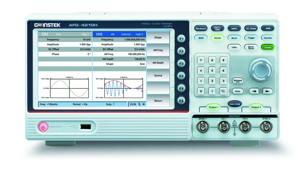 La serie de generadores de funciones arbitrarias AFG-4000 es la primera serie de generadores de funciones arbitrarias de GW Instek que está equipada con una pantalla táctil de 8″. El ancho de banda de frecuencia de los modelos de un solo canal es de 25 MHz, y los modelos de doble canal cuentan con selecciones de ancho de banda de frecuencia de 250 MHz/100 MHz/80 MHz/60 MHz/35 MHz/25 MHz. Toda la serie proporciona una alta resolución de 1 μHz y tiene formas de onda estándar incorporadas como onda sinusoidal, onda cuadrada, onda triangular, onda de pulso, onda de ruido, onda armónica, etc. El modelo de 250 MHz con el ancho de banda más alto proporciona una frecuencia de muestreo de 1,25 G Sa/s; los modelos de rango medio que van desde 35 MHz a 100 MHz proporcionan una frecuencia de muestreo de 500 MSa/s; y los modelos de nivel de entrada de 25 MHz tienen una frecuencia de muestreo de 125 MSa/s. En cuanto a la resolución vertical, los modelos de 35 MHz a 250 MHz tienen una resolución de 16 bits, y los modelos de nivel de entrada de 25 MHz ofrecen una resolución de 14 bits. Además, en términos de profundidad de memoria, los modelos de canal dual de 25 MHz a 250 MHz ofrecen una profundidad de memoria de 10 M, y los modelos de canal único de nivel de entrada de 25 MHz ofrecen una función de edición de forma de onda arbitraria con una profundidad de memoria de 16 k. Toda la serie tiene 146 formas de onda arbitrarias integradas para edición y salida.