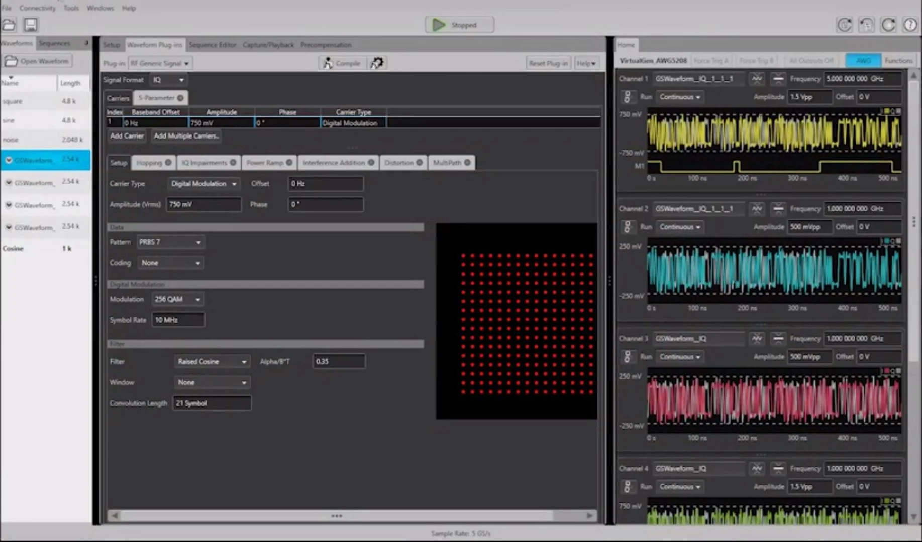 El generador de formas de onda arbitrarias AWG5200 satisface las exigentes necesidades de generación de señales con una alta fidelidad de señal y la capacidad de escalar hasta 32 o más canales con sincronización de múltiples unidades a un precio asequible. Ideal para investigación avanzada, pruebas electrónicas, radares, diseño y prueba de sistemas de guerra electrónica.