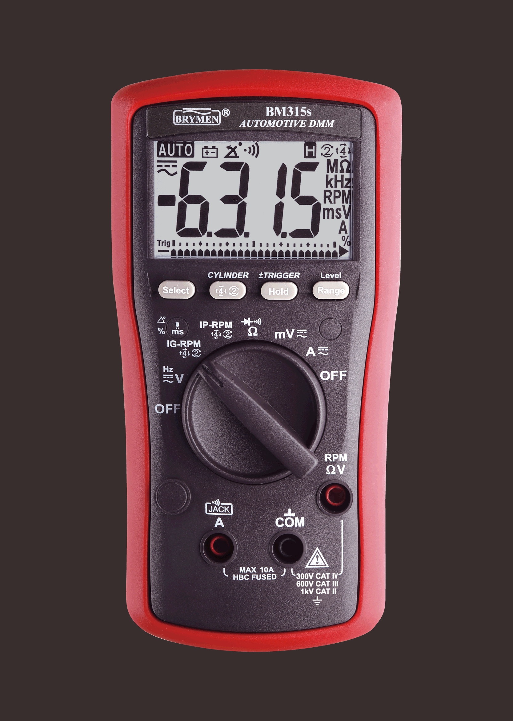 RPM del motor seleccionables de 4 tiempos, 4-DIS/2 tiempos y 2-DIS, lecturas de % ms de activación/desactivación seleccionables.