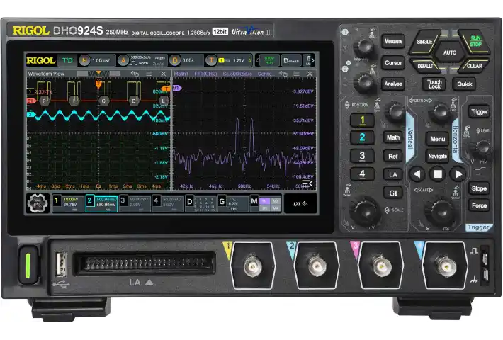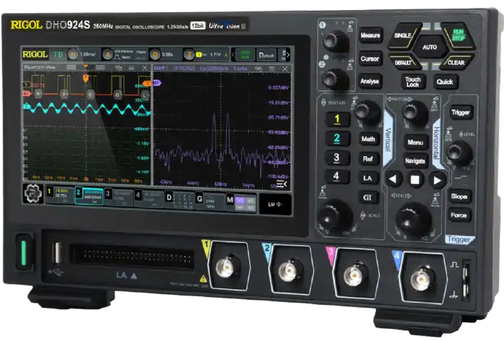 La serie DHO900 es el osciloscopio digital económico de alto rendimiento de RIGOL. Aunque tiene un diseño compacto, tiene un rendimiento superior. Cuenta con una velocidad de captura de hasta 1.000.000 wfms/s (en modo UltraAcquire), una profundidad de memoria de 50 Mpts, una resolución de 12 bits y un bajo nivel de ruido. La serie DHO900 admite 16 canales digitales. Un equipo puede realizar un análisis tanto de las señales analógicas como digitales para cumplir con los escenarios de prueba y diseño integrado. Con un precio asequible equivalente a la compra de un equipo de nivel de entrada, puede acceder al análisis automático de bus serial y paralelo, análisis de diagrama de Bode y otras funciones para cumplir con las demandas de prueba en los campos de I+D, educación e investigación científica.