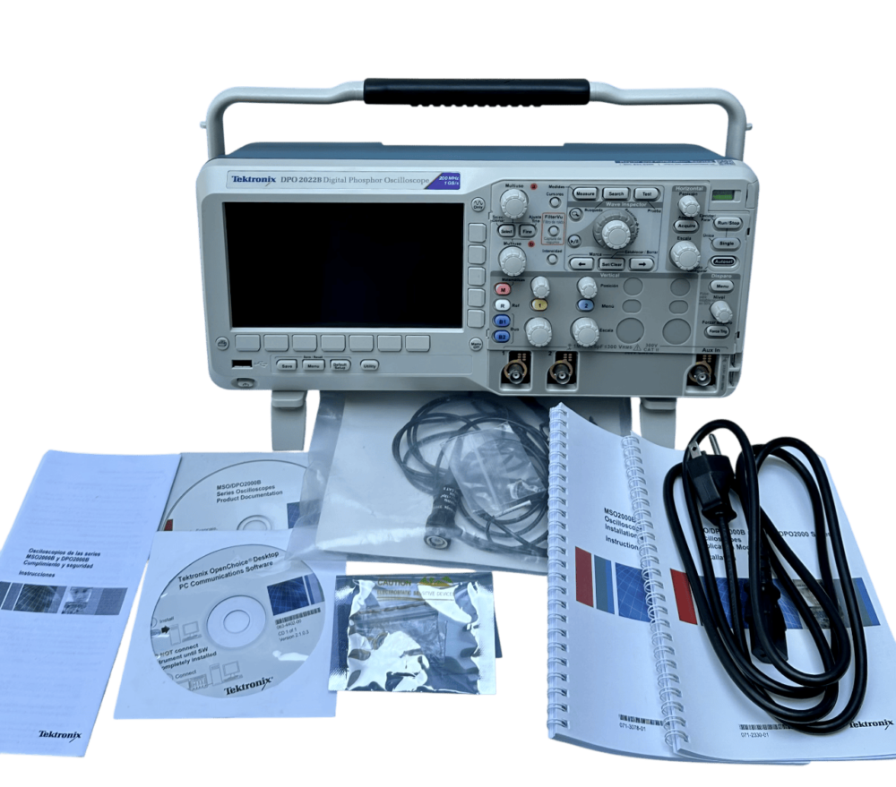 El Tektronix DPO2022B es un osciloscopio digital de 200 MHz con 2 canales y velocidad de muestreo de 1 GS/s, diseñado para acelerar el análisis y depuración de señales electrónicas. Su capacidad para capturar hasta 5000 formas de onda por segundo permite identificar fallas transitorias poco frecuentes con precisión. La pantalla a color con gradación de intensidad ofrece una visualización clara del historial de actividad de las señales, destacando los eventos más repetitivos. Con conectividad USB integrada y opciones como Ethernet o VGA, este equipo proporciona una visión detallada del comportamiento real de los dispositivos bajo prueba.