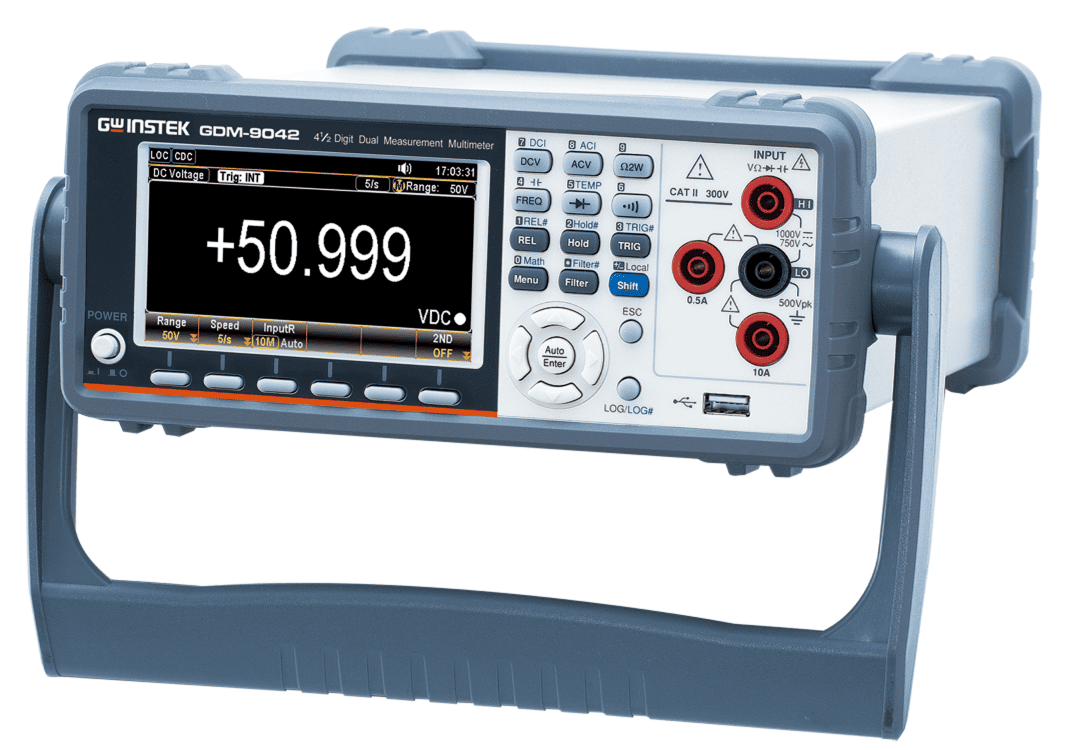 La serie GDM-904x de GW Instek, compuesta por los modelos GDM-9041 y GDM-9042, está diseñada para ofrecer medición dual simultánea, lo que permite a los ingenieros comparar dos parámetros al mismo tiempo con un solo instrumento. Con una resolución de 50,000 cuentas, precisión de 0.02% en voltaje DC y una pantalla LCD de fácil lectura, garantiza resultados confiables en aplicaciones de laboratorio, manufactura y educación.