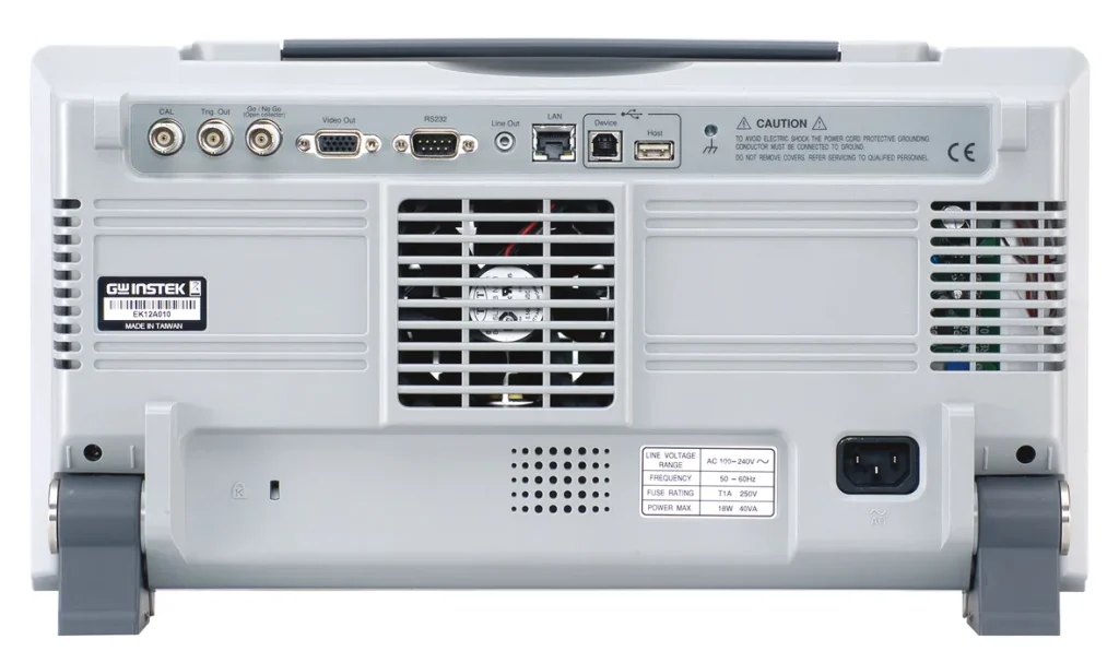 Osciloscopio de almacenamiento digital de 4 canales con un ancho de banda de 350MHz, velocidad de muestreo de 5GS/s, longitud de registro de 25K puntos, 3 impedancias integradas (50Ω-75Ω-1MΩ) y resolución de 8 bits. También cuenta con interfaz USB, LAN, RS-232C, puerto de video SVGA y opcional GPIB, software de análisis de energía (opcional), software de análisis de bus serie para I2C, SPI y UART (opcional), pantalla LCD TFT SVGA de 8″ (800×600), función de pantalla dividida y tecnología de persistencia visual VPO.