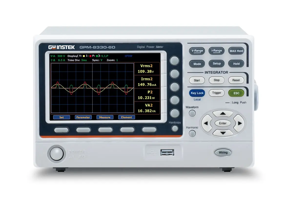 GPM-8320-60 / GPM-8330-60 también cuenta con capacidades de visualización de forma de onda (voltaje / corriente / potencia), la función de medición de integración, medición de armónicos y análisis de múltiples órdenes (la medición de 50 Hz / 60 Hz cumple con los requisitos de IEC61000-4-7), terminales de entrada de sensor externo y una variedad de interfaces de comunicación. Estas características ayudan a los usuarios a lograr mediciones de potencia claras, convenientes y precisas, lo que los convierte en los medidores de potencia más completos y rentables de la misma categoría.