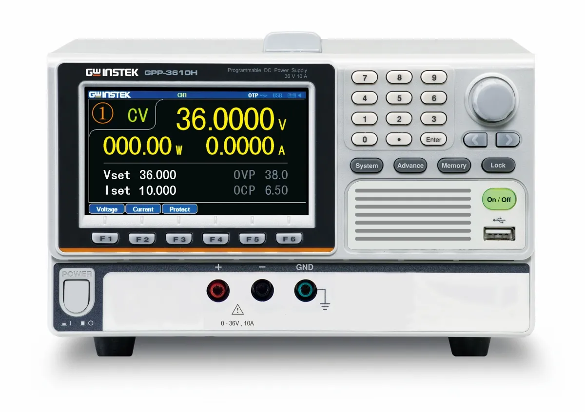 La serie de fuentes de alimentación DC programables GPP incorpora dos nuevos modelos de 360 W, a saber, el GPP-3610H de 36 V/10 A y el GPP-7250 de 72 V/5 A. El GPP-3610H proporciona una alta resolución de programación (1 mV/0,2 mA) y resolución de lectura (0,1 mV/0,2 mA); el GPP-7250 proporciona una alta resolución de programación (2 mV/0,2 mA) y resolución de lectura (0,1 mV/0,1 mA), y las mejores características de bajo ruido de ondulación ≦1 mVrms (5 Hz ~ 1 MHz) / ≦2 mArms y capacidad de recuperación transitoria de salida ≦100 us.