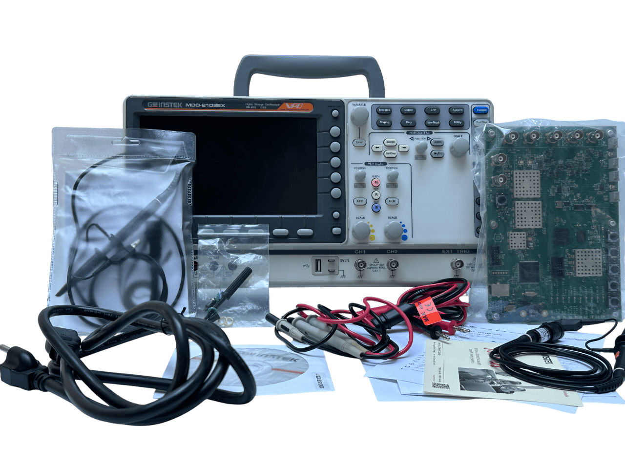 La serie MDO-2000E es un osciloscopio multifuncional de dominio mixto. Incluye dos combinaciones de funciones: MDO-2000EG y MDO-2000EX. Los modelos MDO-2000EG incorporan un analizador de espectro y un generador de formas de onda arbitrarias de doble canal de 25 MHz, mientras que los modelos MDO-2000EX incorporan un analizador de espectro, un generador de formas de onda arbitrarias, un multímetro digital de 5000 cuentas y una fuente de alimentación de 5 V/1 A. El MDO-2000EX, pionero en su categoría, es el único osciloscopio equipado con un multímetro digital y una fuente de alimentación en la industria de test y medición.