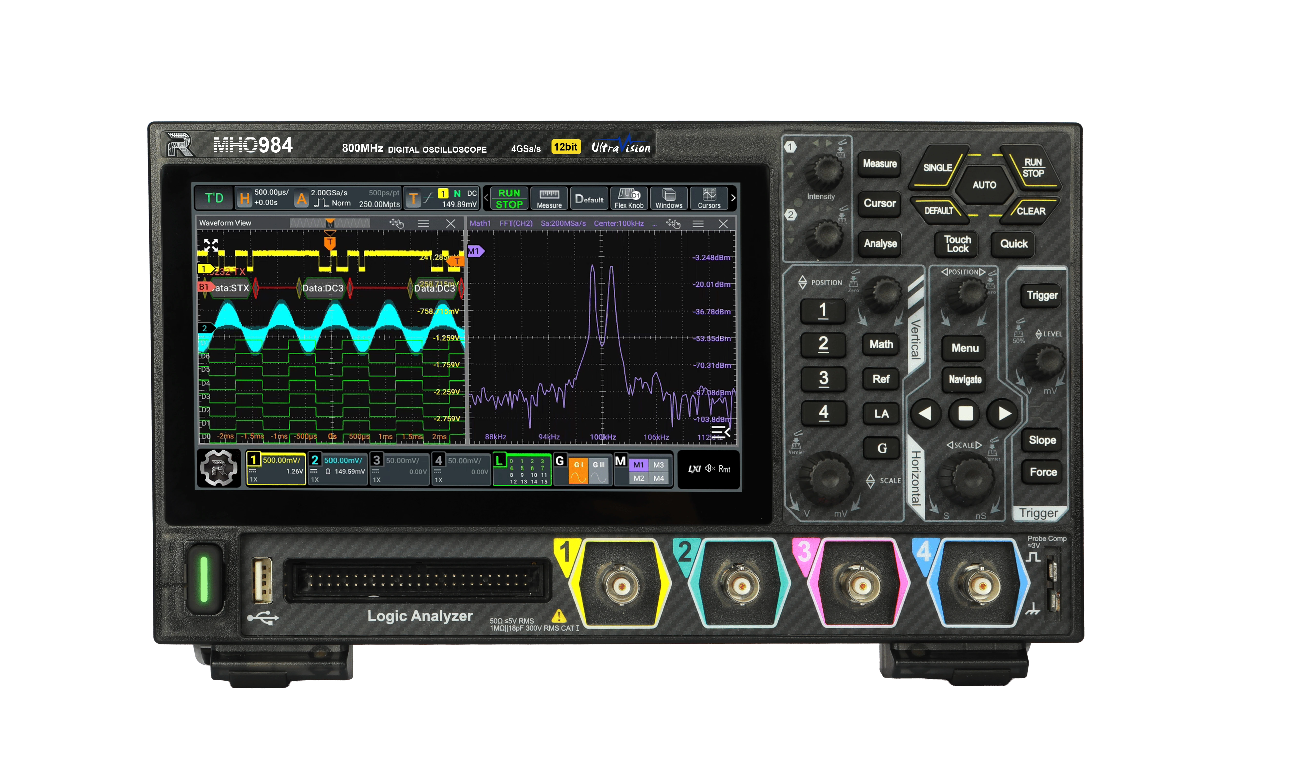 La serie MHO900 de RIGOL combina precisión, rendimiento y accesibilidad en un osciloscopio digital compacto de 4 canales. Basada en la plataforma técnica Centaurus, ofrece una resolución de 12 bits, ancho de banda de hasta 800 MHz y velocidad de muestreo de 4 GSa/s, logrando una visualización más detallada y estable de las señales.