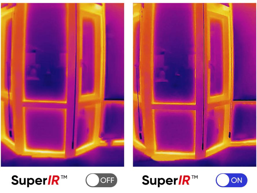Equipada con lente dual, detector VOx de alta resolución y cámara visible de 0,3 MP, proporciona imágenes detalladas. Sus funciones SuperIR™ y de fusión permiten visualizar fallos ocultos y obtener mediciones de temperatura precisas.
