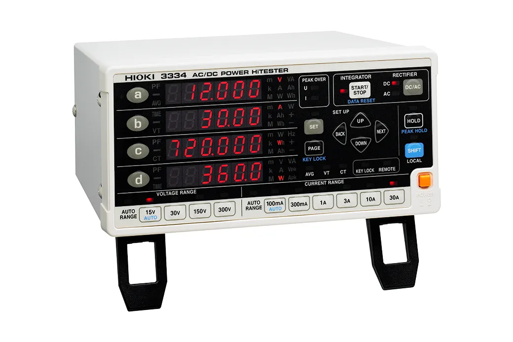 Los medidores de potencia y analizadores de potencia de sobremesa de Hioki son los mejores instrumentos de medición de potencia de su clase para medir líneas monofásicas o trifásicas con un alto grado de precisión y exactitud. El 3334 es un medidor de potencia de AC/DC que mide la corriente de irrupción y el consumo de energía, ideal para aplicaciones de DC e integración de corriente y energía para cumplir con los estándares de eficiencia energética.