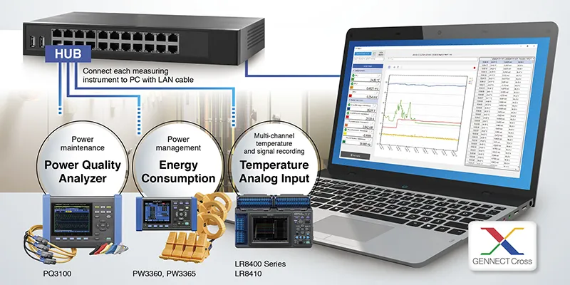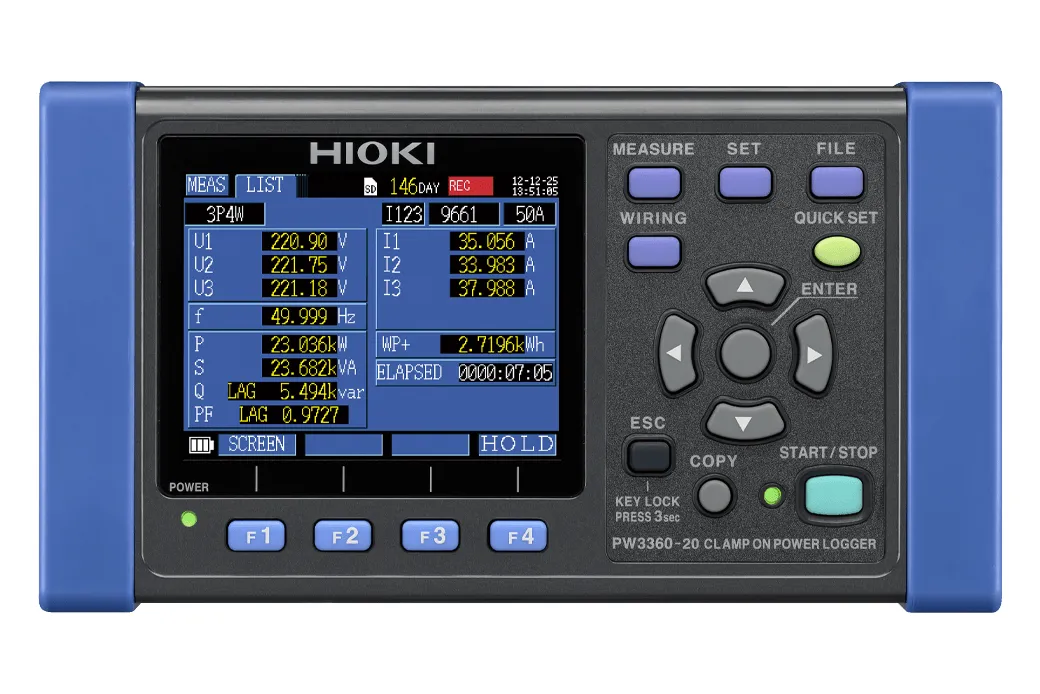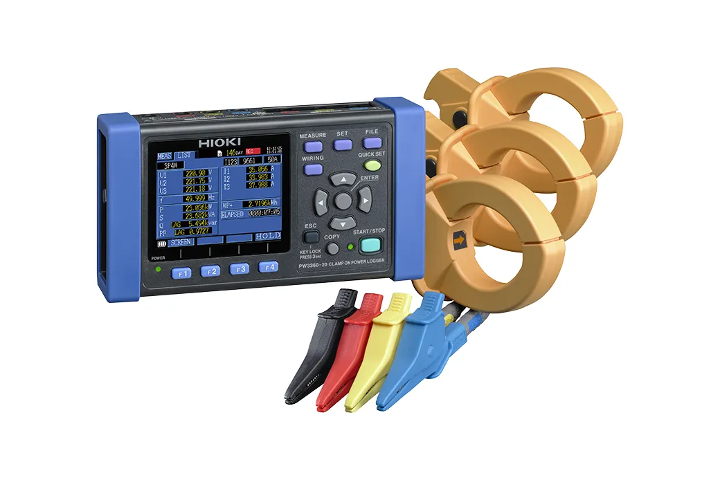 Los medidores de Medidores de potencia de pinza HIOKI son dispositivos de medición de potencia multicanal que utilizan la entrada del sensor de pinza para medir de forma precisa y segura la potencia en líneas monofásicas a trifásicas. Los registradores de energía compactos trifásicos de 4 hilos PW3360 monitorean la demanda de energía y otros parámetros de energía para ayudar en las auditorías de energía y validar las medidas de ahorro de energía