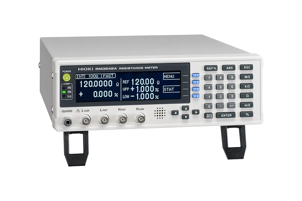 Los medidores de resistencia de CC de Hioki miden una amplia gama de valores de resistencia con un alto nivel de precisión. El RM3542A ofrece mediciones de alta velocidad y alta estabilidad y una productividad mejorada al minimizar las variaciones y reducir los errores de contacto. Además, la tecnología de medición de bajo impacto le permite medir la resistencia de piezas electrónicas en miniatura de tamaño 008004.