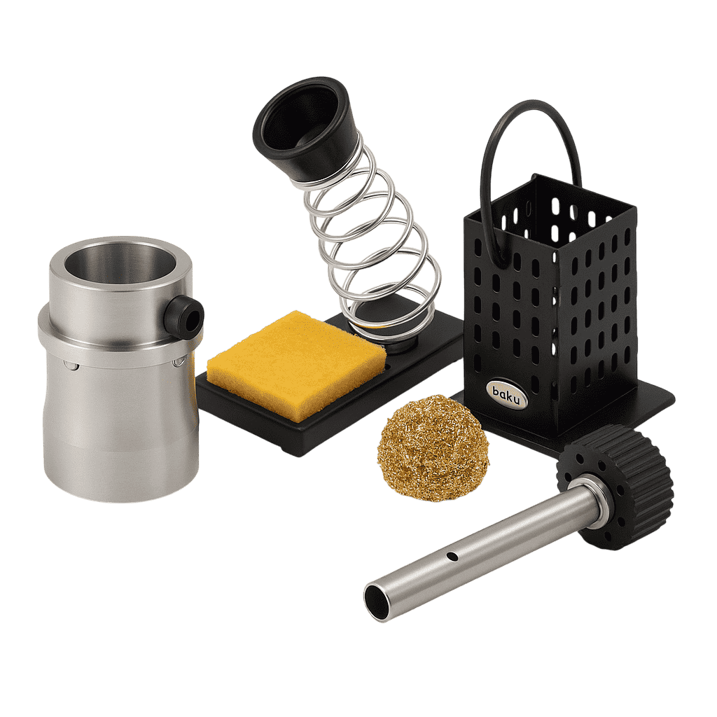 Nuestra gama de accesorios para soldadura incluye soportes, adaptadores y kits diseñados para maximizar la seguridad, precisión y eficiencia en tu estación de trabajo. Desde bases y soportes para cautín hasta boquillas de aire caliente, baños de soldadura y sistemas de precalentamiento, cada pieza está fabricada con la calidad y fiabilidad Weller que garantiza un desempeño constante.